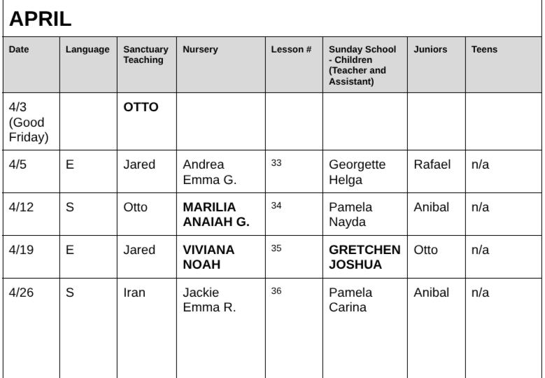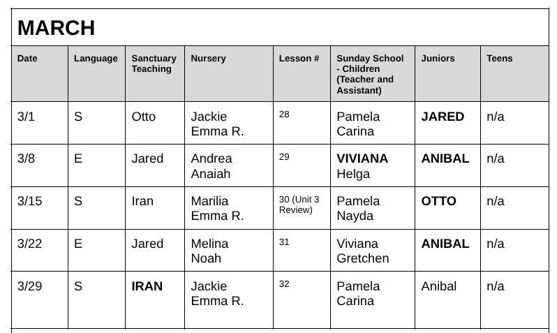 Children's Ministry Schedule